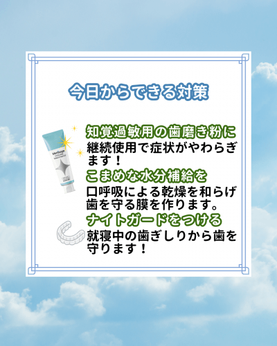 - 知覚過敏用の歯磨き粉に変える:継続使用で症状がやわらぎます!